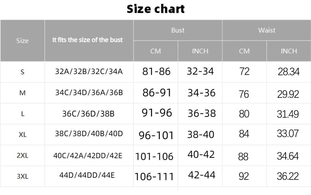 - Adjustment straps and underwires: The adjustment strap between the two cups and the steel ring design is designed to better support the chest, gather the breast, and prevent the chest from drooping, giving enough support in case the breasts are dispersed